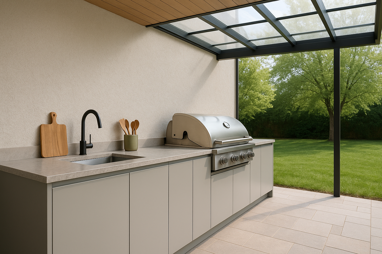 ¿Quieres proteger tu cocina exterior de la lluvia, el viento y los rayos UV, sin tener que renunciar a la luz? Entonces necesitas una pérgola para tu cocina exterior. Elegir el material adecuado es muy importante. El material no solo determina lo resistente y práctica que será tu pérgola, sino también su durabilidad. Las planchas de plástico como el metacrilato y el policarbonato son ideales para ello. Son ligeras, fáciles de montar y resistentes a la intemperie.