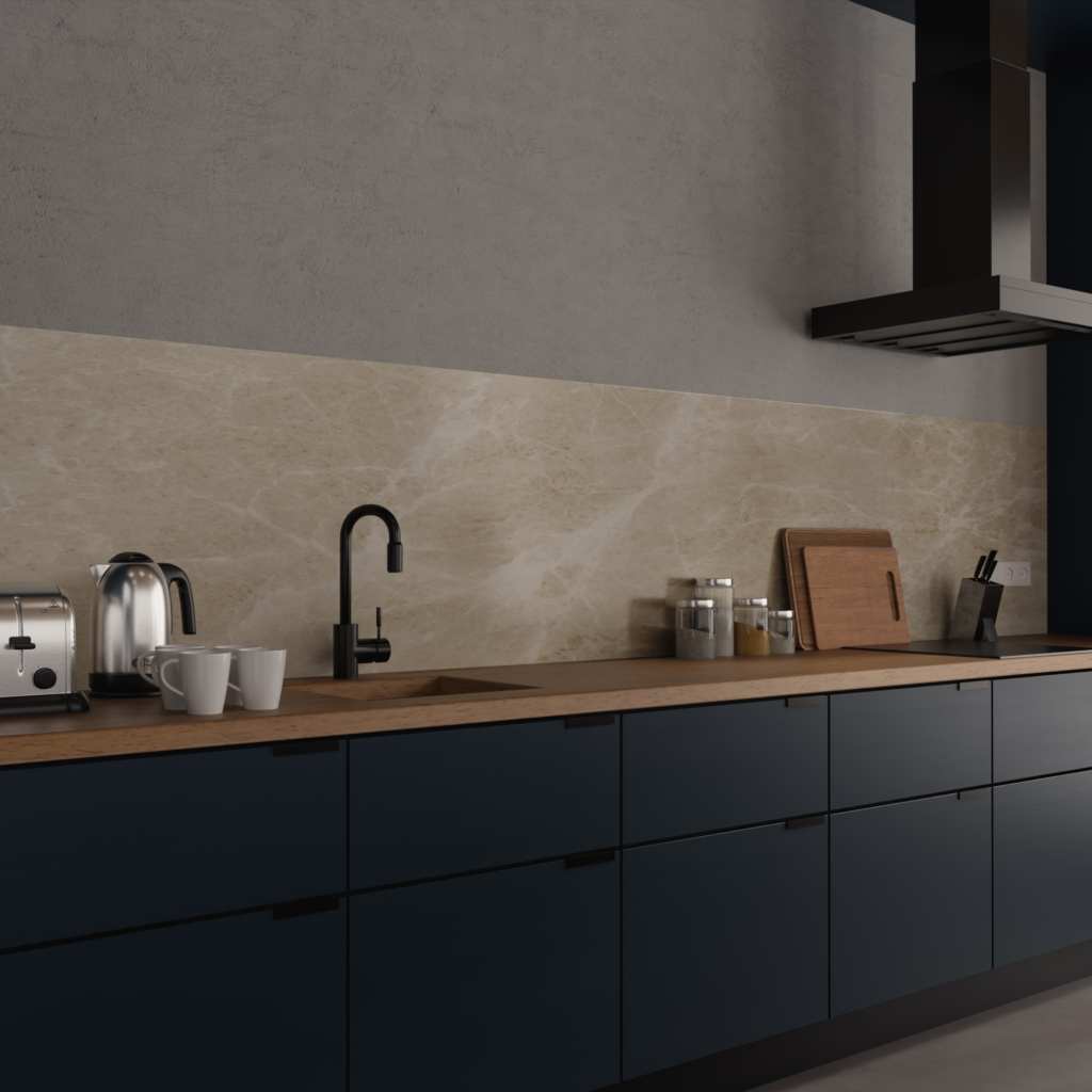 Nuestros paneles de pared en mármol crema mate ofrecen a tu cocina, baño o inodoro una apariencia elegante. Este panel está hecho de Alupanel, una elección muy adecuada si buscas durabilidad y facilidad a la hora de instalarlo. El material, sólido y ligero (una combinación de capas delgadas de aluminio y un núcleo de plástico), es totalmente impermeable. Perfecto para lugares húmedos como la ducha. El acabado mate agrega un toque de clase a tu interior sin complicaciones. ¿Y lo mejor de todo? ¡Puedes instalarlo hasta tres veces más rápido que los azulejos tradicionales!
