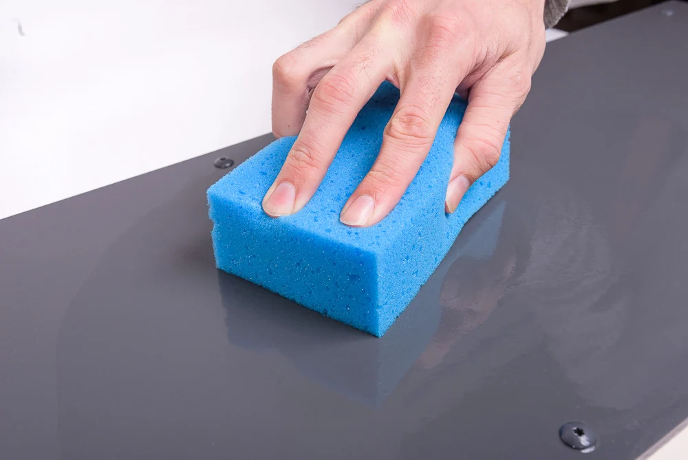 Usa una esponja o paño suave para aplicar el limpiador sobre la superficie de Trespa®. Frota toda la superficie sin ejercer demasiada presión. Así, eliminarás la suciedad y el polvo sin causarle arañazos.